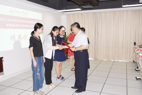 AG真人国际官方网站副院长张先锋宣读了《关于表彰15级国际经济与贸易(中外合作办学)专业王一璇等18名同学的决定》,获表彰的学生依次登台,校领导为其颁发荣誉证书。2015级国际经济与贸易(中外合作办学)专业学生王一璇、2017级国际经济与贸易(中外合作办学)专业学生洪金昊、AG真人国际官方网站国际经济与贸易系党支部书记谢众、学生家长徐月良分别作为留美学子代表、在校生代表、教师代表和家长代表作分享发言。