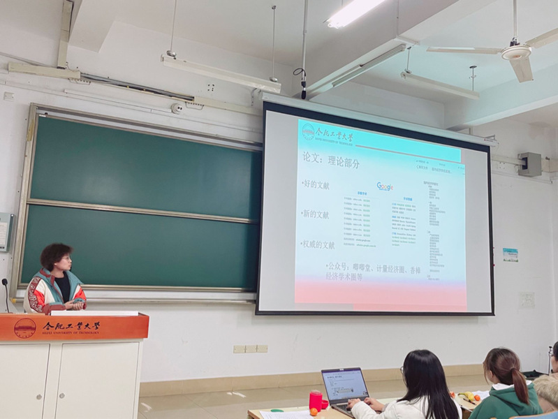 讲座中,潘振清结合自身经历强调要明确自身发展方向,说明了目标设定在学习工作中的重要性。他还详细介绍了案例写作的具体要求,分析参赛案例的评审指标,对同学们今后参加学科竞赛提供了参考。接着,管莉莉结合自己的论文写作经历,向同学们分享了一些常见的文献检索网站和检索方法,介绍了论文写作中理论、实证检验部分的相关注意事项。同时结合个人求职现状,强调了实习的重要性,让同学们更加清晰地了解当前的就业环境。最后,两位主讲人对同学们提出的问题做出了相应的解答,本次活动圆满落幕。