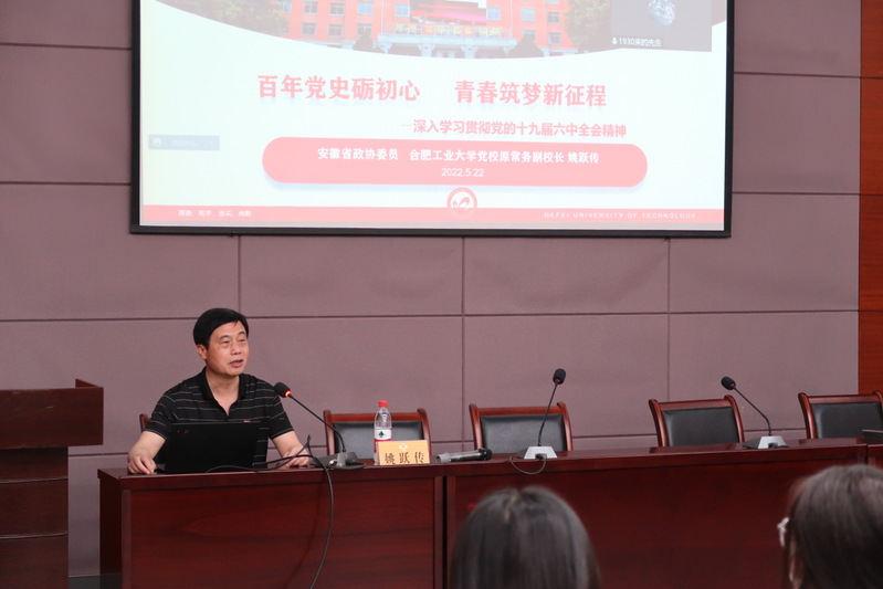 5月22日下午,AG真人国际官方网站第67期入党积极分子班于翡翠湖校区科教楼A座第五会议室开展理论学习。安徽省政协委员、原党委宣传部正处级组织员、AG真人国际官方网站党校原常务副校长姚跃传受邀作题为“百年党史砺初心,青春筑梦新征程”的专题报告,入党积极分子班全体学员参与此次学习。