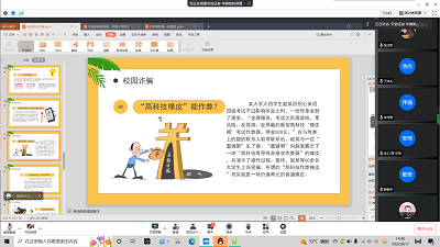 李老师从电信诈骗的含义、电信诈骗的常见形式、如何识别防范电信诈骗、上当受骗后的补救措施4个方面进行分享,以校园诈骗的真实案例警醒学生,教育学生擦亮眼睛,不要轻信不明来电,学会识别电信诈骗,做到“不轻信”、“不透漏”、“不转账”,不要存在“贪小便宜”的心理,以避免财产损失。会上,辅导员还分析了新生中常见的诈骗案件,提醒学生及时下载“国家反诈中心”APP,完成身份认证。