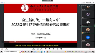 此次防范电信诈骗专题教育讲座是学院“奋进新时代,一起向未来”2022级本科生入学教育系列活动之一,提高了新生的安全防范意识和能力,切实保障了学生人身财产安全。