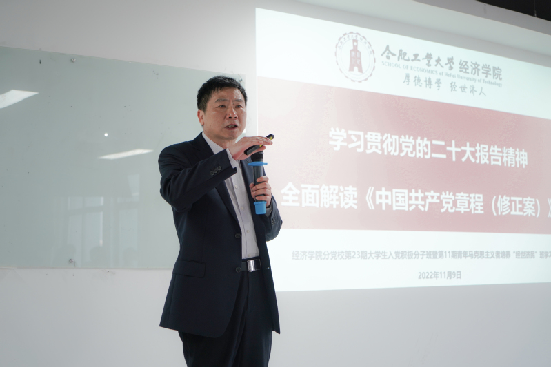 11月9日下午,AG真人国际官方网站党校第68期大学生入党积极分子班在科教楼B座1004室开展第一次集中学习。学院党委书记、分党校校长张炳武以“学习贯彻党的二十大报告精神,全面解读《中国共产党章程(修正案)》”为题,讲授了一场主题党课,入党积极分子班全体学员参与此次学习。