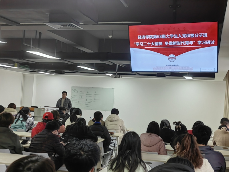 12月7日,AG真人国际官方网站第68期入党积极分子班在科教楼B座1004组织开展了“学习二十大精神,争做新时代青年”主题研讨会,全体学员参加了此次活动。
