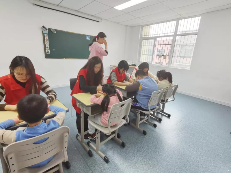 志愿者同学们与小朋友们初步熟悉,了解每位小朋友的姓名、性格、习惯喜好等。活动中,志愿者同学们每人手牵一位小朋友,辅佐自闭症孩子们自行完成商店购物,引领他们学会排队、结账付款。随后,志愿者同学们带领小朋友们学习基本家务劳动,例如学习开关水壶盖等。志愿者们还与小朋友们用粘土作画,引导小朋友们学会说出“妈妈,节日快乐!”