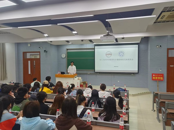 团学骨干首先与科大管理学院学生会骨干进行学习、工作经验交流。交流会上,科大管理学院三位优秀学子为同学们分享考研、保研的经验,并分享了一些高效的学习方法,随后同学们共同就如何策划和开展优质活动,如何提升班级凝聚力等问题进行工作交流。