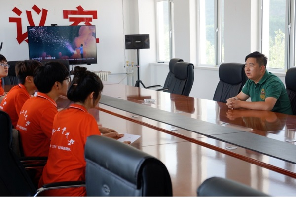 图为团队成员与巴图湾村驻村第一书记杨帅座谈交流
