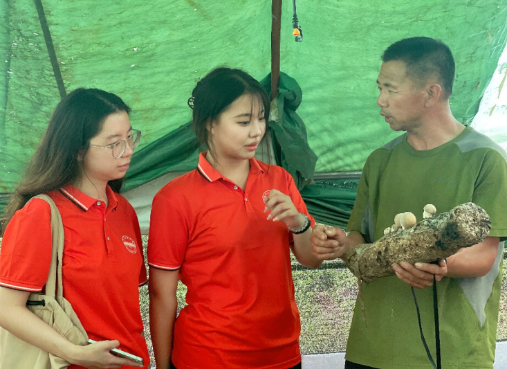 在吴高峰带领下,实践团还前往村内一家集菌种培育、食用菌生产、加工、储存销售为一体的香菇种植基地观摩学习。参观期间,吴高峰向我们展示了香菇保鲜烘干等操作流程,就香菇种植技术以及香菇全产业链发展做了详细介绍。