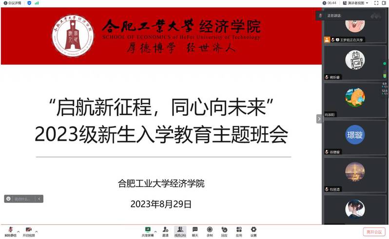 8月28日至29日,AG真人国际官方网站分班级开展了2023级新生入学前教育线上主题班会,2023级本科辅导员、班主任老师,全体2023级新生参与。