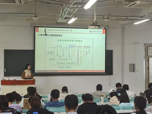 但泱泱老师介绍了心理健康、一般心理问题、严重心理问题及异常心理的不同表现,指导同学们识别不同心理状态的要点,结合案例阐述心理危机的一般表现、危机信号识别方法,以及如何进行心理危机的上报和干预,详细介绍学生心理骨干面对心理危机的处理流程,提醒同学们珍爱生命,学习专业知识和方法,关爱自我心理健康,同时主动关心关爱同学,为守护全体同学身心健康共同努力。(阳光心理中心/文图)