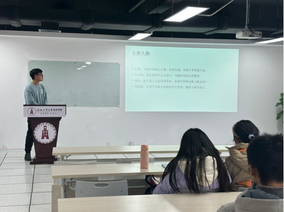 读书会分两个小组进行,两组同学分别共读《钢铁是怎样炼成的》和《红岩》。领读人对书籍进行概括分享,在小组中,每位同学纷纷发表感悟。《钢铁是怎样炼成的》是由俄罗斯作家奥列斯特·列昂尼多维奇·柯拉索夫所著,是一部描写了沙皇时期俄国人民无畏斗争的小说。《红岩》主要讲述了在1948年至1949年新中国成立前夕,在重庆的国民党统治下,共产党员和革命志士在“中美合作所”白公馆、渣滓洞集中营中所进行的英勇斗争。两本书都彰显共产主义革命者始终坚持信念的大无畏精神,给同学们很深的感触体会,同学们分别采用不同的形式、不同的角度解读文章,细品文字背后的深意,重现先驱的荣光。两部小说让同学们感受到幸福是需要靠我们去坚韧拼搏的,在逆境中依旧要学会不忘本心,砥砺前行。